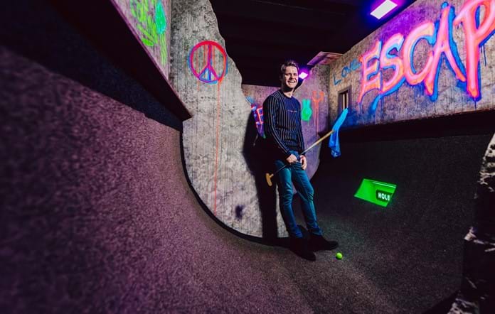 Prison Golf Rotterdam is a themed miniature golf course set within a prison. Armed with a golf club, the goal is to putt the ball into each hole using as few strokes as possible. However, it's not straightforward! Numerous obstacles block your path, requiring you to navigate the ball through pipes to reach the correct hole. Can you escape the prison with minimal strokes? Take on the challenge and host the most enjoyable kids' party ever!