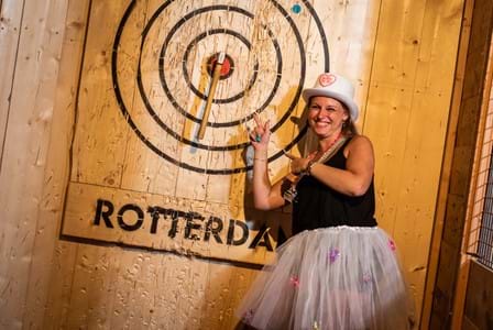 Real Axe Throwing kan iedereen spelen vanaf 18 jaar oud. Omdat je gooit met echte hakbijlen, hanteren we hier een leeftijdsgrens om de veiligheid te waarborgen. Maar deze activiteit is echt niet alleen voor "stoere mannen". Techniek is namelijk veel belangrijker dan kracht!